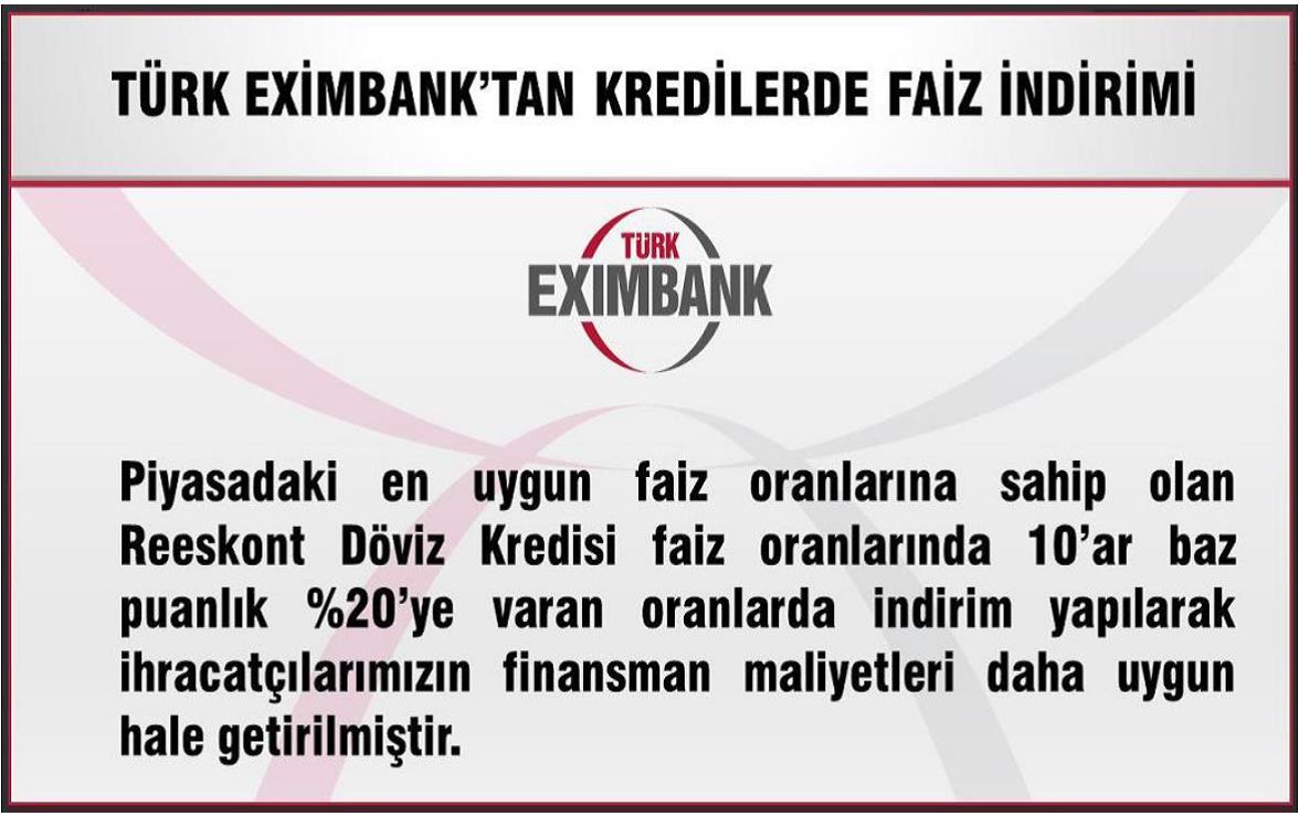 "TÜRK EXİMBANK'DAN REESKONT KREDİLERİNDE FAİZ İNDİRİMİ VE KOBİ'LERE İLAVE KAYNAK TAHSİSİ