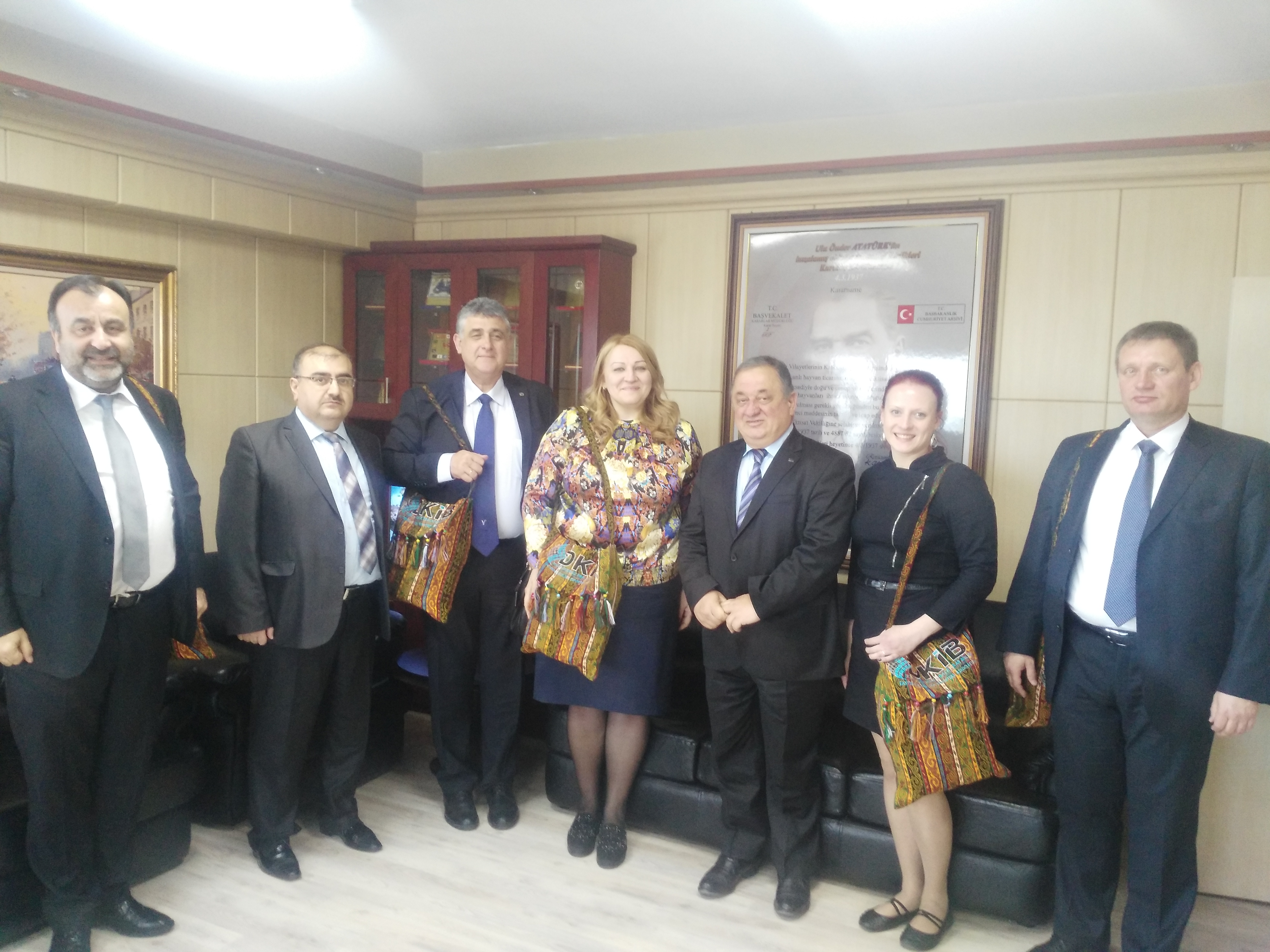 12.04.2017 tarihinde Ukrayna'dan Kherson Ticaret ve Odası Başkanı Sayın Viktoriya V. OSTROUMOVA ve ekibi ile Doğu Karadeniz İhracatçıları Birliği Yönetim Kurulu Başkanı Sayın Ahmet Hamdi GÜRDOĞAN katılımıyla DKİB Birlik merkezinde; Türk-Ukrayna karşılıklı dış ticareti ve bunun geliştirilmesi konularını içeren bir toplantı gerçekleştirilmiştir.