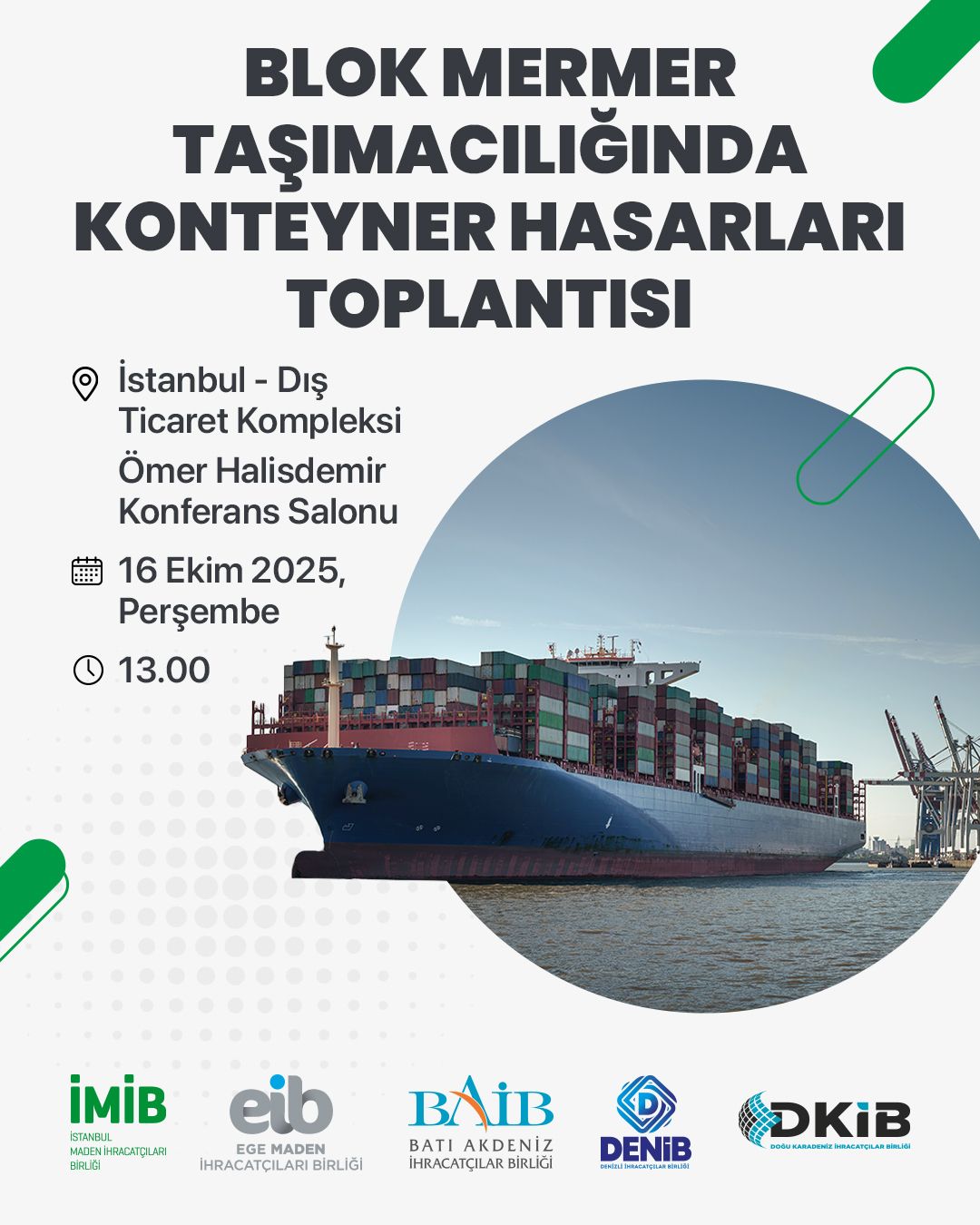 Bu doğrultuda, sektörün önemli gündem maddelerinden biri olan blok mermer taşımacılığında yaşanan konteyner hasarları konusunu ele almak amacıyla bir fiziki toplantı düzenlenecektir.